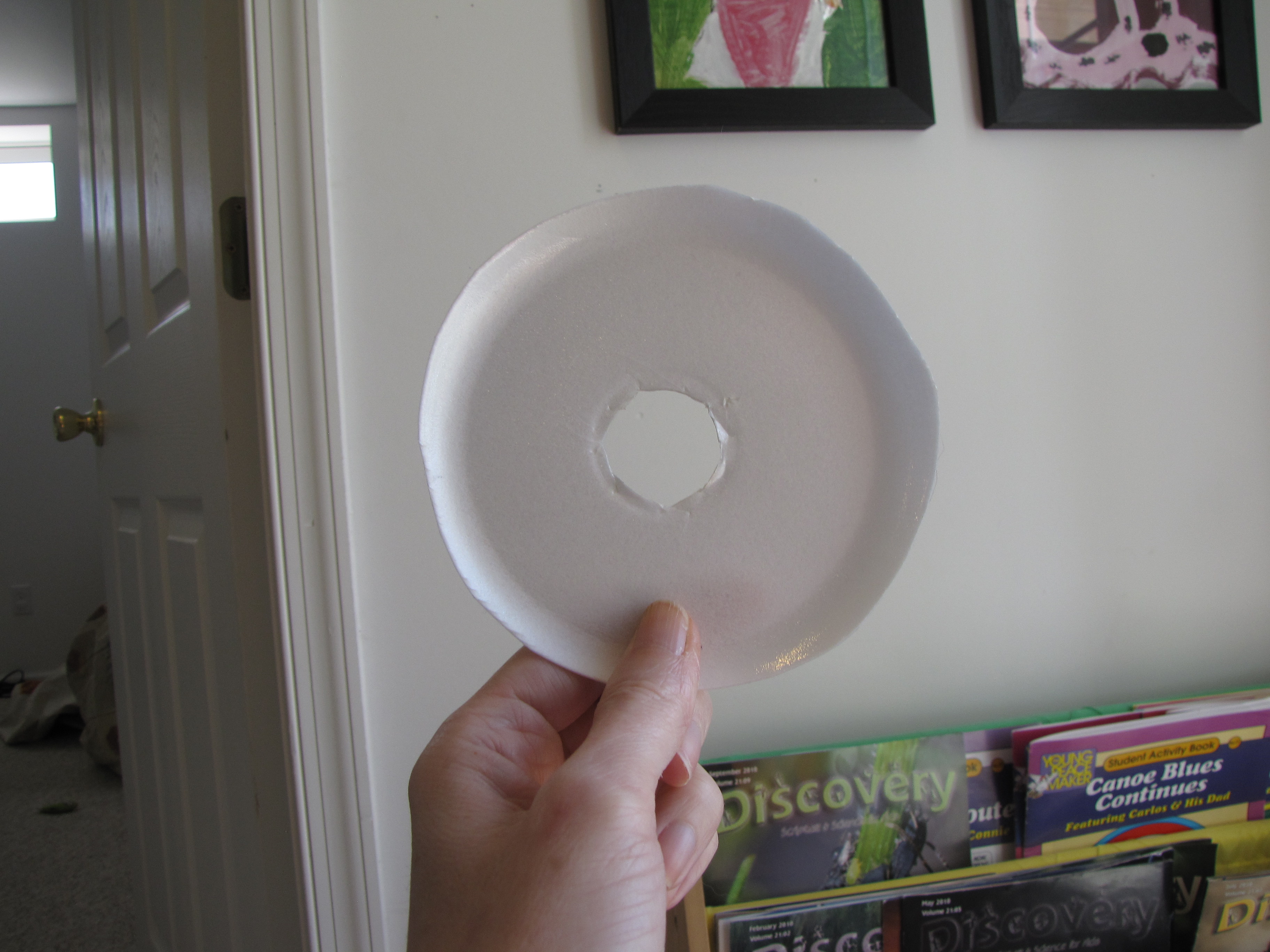- plastic oatmeal lid, or styrofoam plate