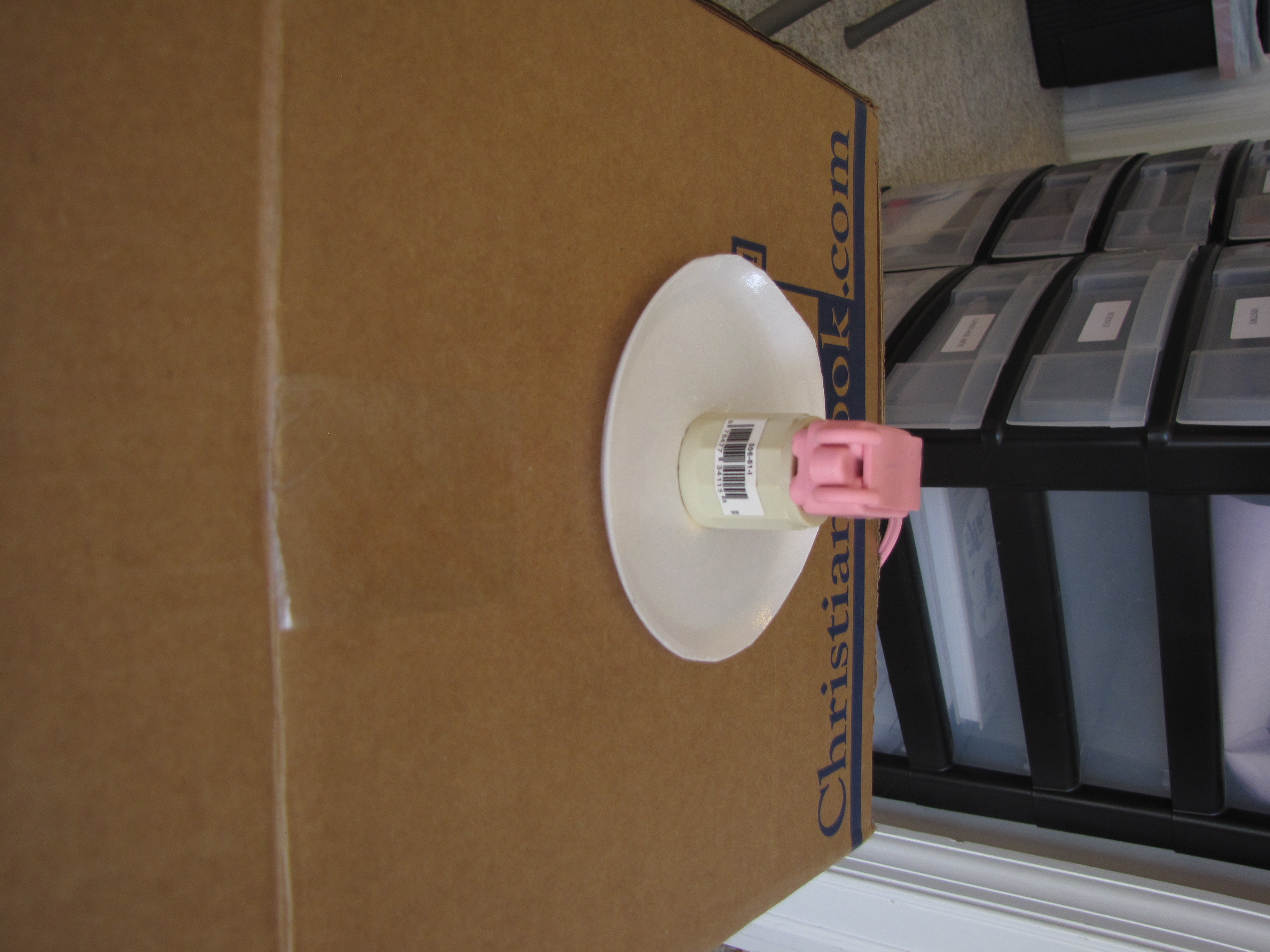 - Position your box on its end and cut a 1 inch hole in the top center of the box.