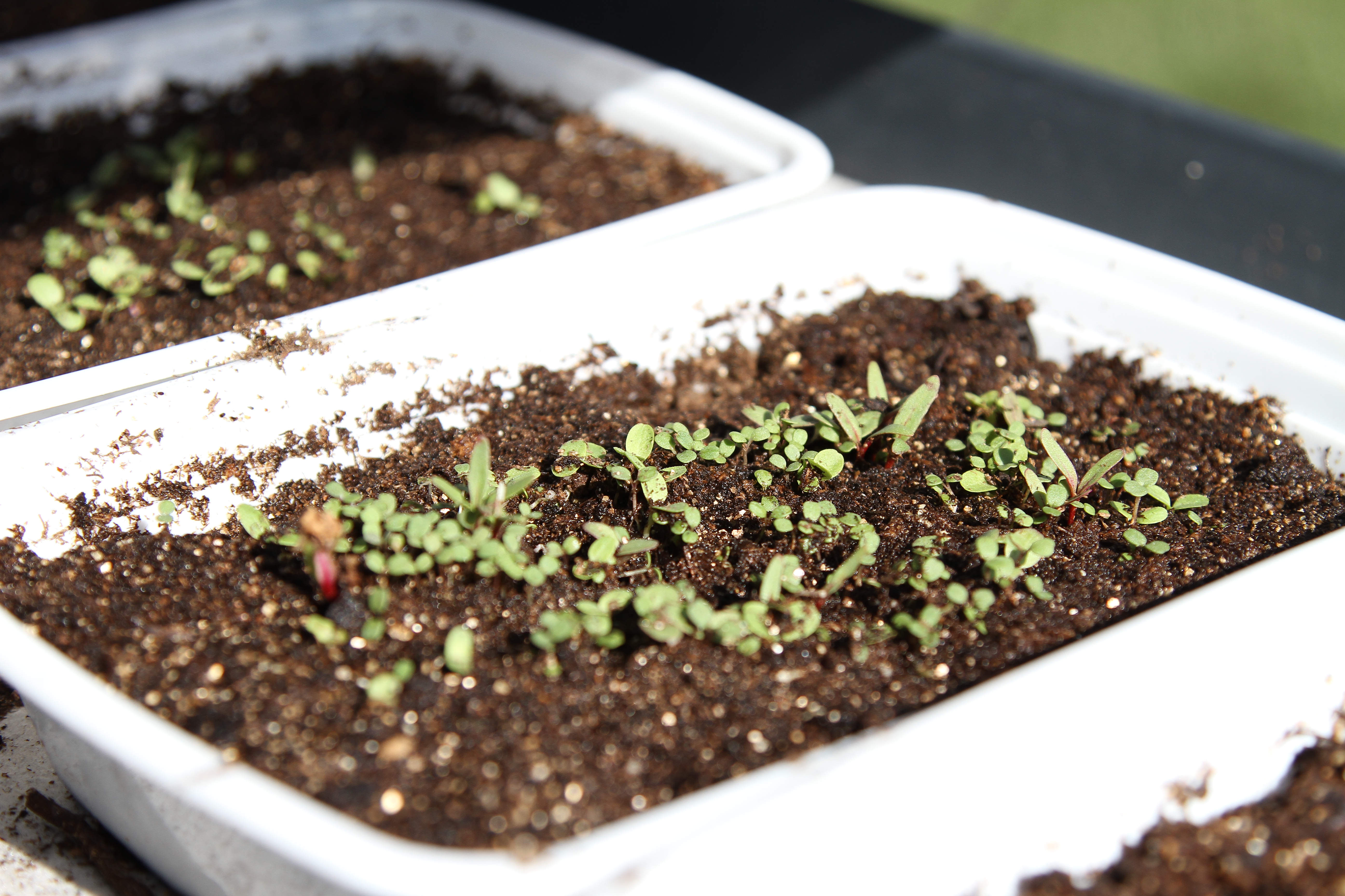 The microgreens have sprouted, but they have been a bit of a pain in the toosh. On Easter Sunday, I neglected to water them in the morning and about a third of my containers bit the dust. I’ve been trying to nurse the survivers back to health ever since.