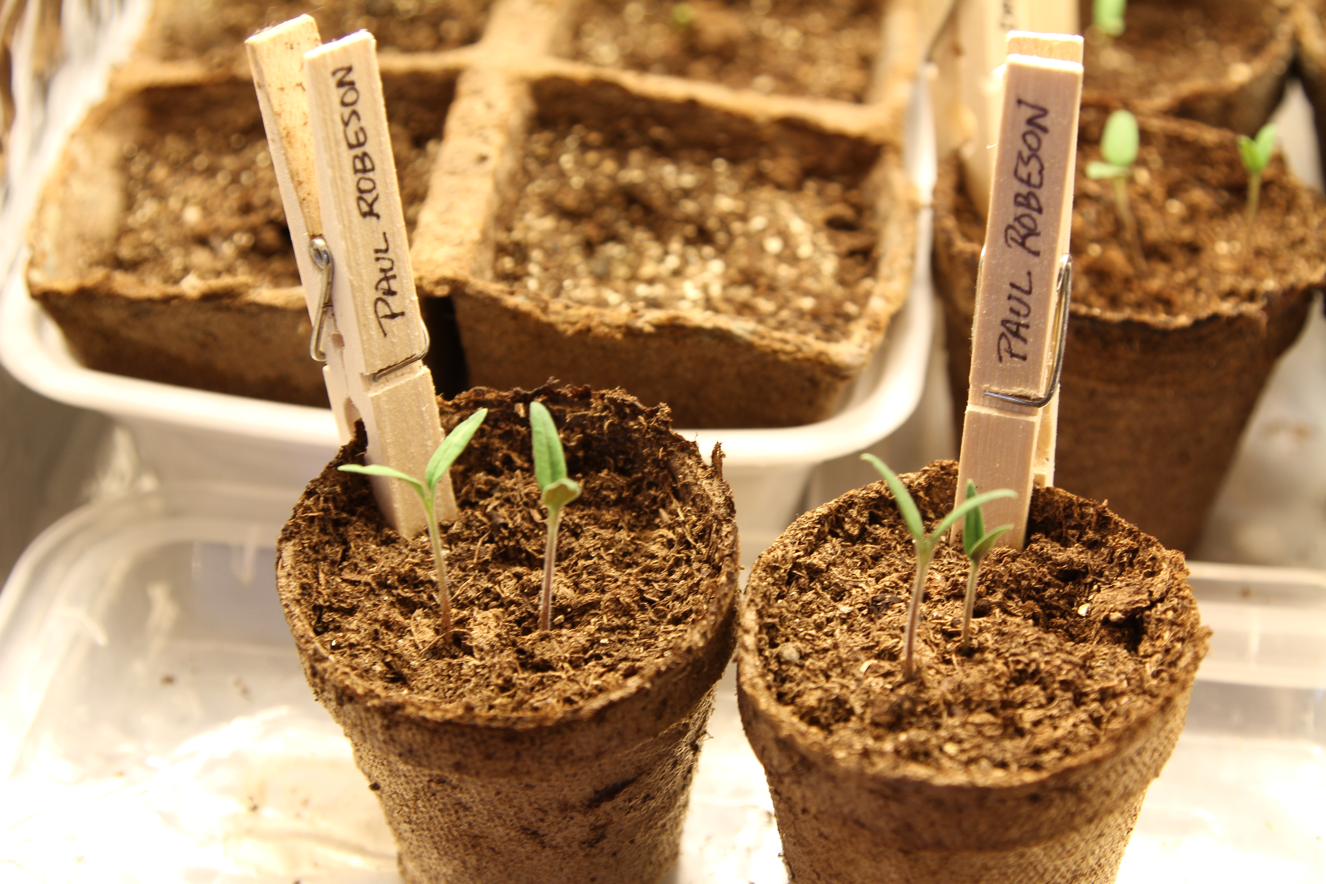 These are Paul Robeson heirloom tomatoes my dad gave me from his seed collection. They were a little slow to sprout as well, but they seem quite happy now.