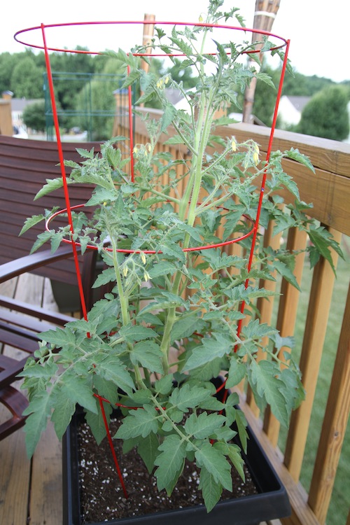 Remember this sweet little volunteer tomato that peeked out from under the oregano in my Grow Camp?