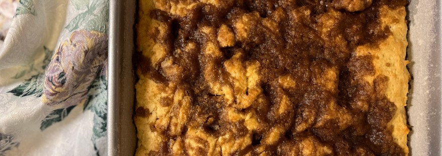 1. Yum, yum, yum, yum. I don’t believe that you should limit coffee cake or any other cake to chilly mornings. It’s spring here and a nice sunny day. I’ll give your coffee cake a try. Nice.