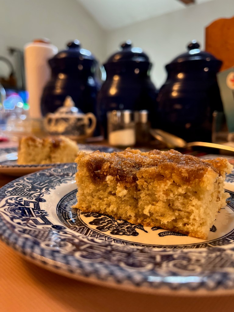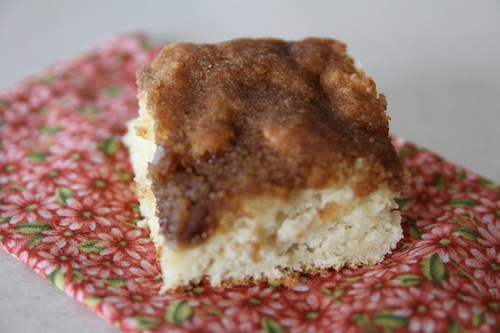 This cake has that perfect coffee cake texture, dense, but tender and not dry at all. It has just enough cinnamon and buttery richness without being too much.