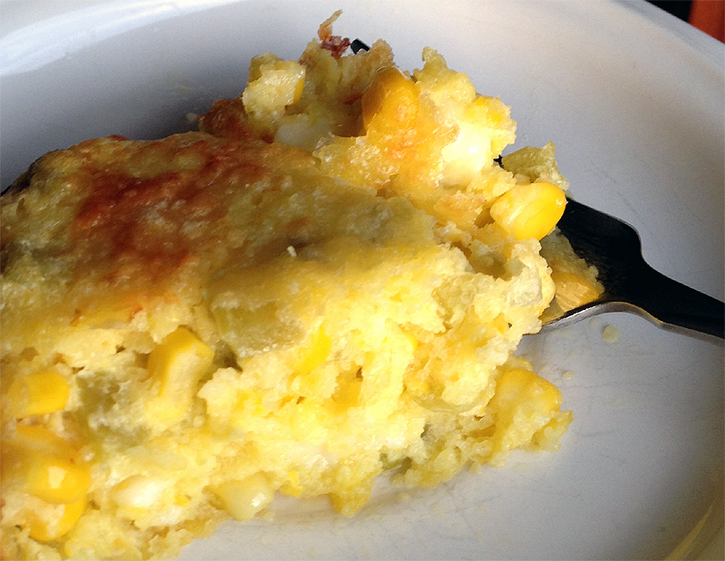 - In a large bowl, combine all remaining ingredients except Parmesan. Add pureed corn mixture and mix well. Pour into casserole dish, sprinkle with Parmesan, and bake for 40 minutes, or until set and golden (check on it at 30 minutes – you don’t want it to dry out, but you want it to be completely set in the middle.)