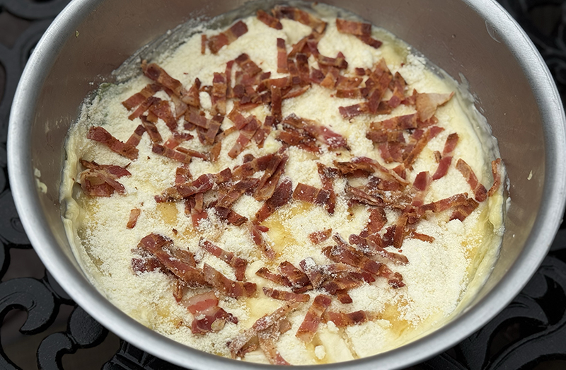 - 1 lb. bacon, fried and cut fine (I just couldn’t bring myself to make this much. I just fried up about 6 slices and used that.)