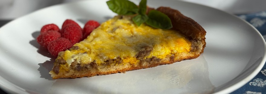 This deep dish breakfast bake combines the ease of refrigerated crescent rolls with a hearty filling. A golden crust forms the base for layers of browned sausage, fluffy eggs with hash browns, and shredded cheddar cheese.